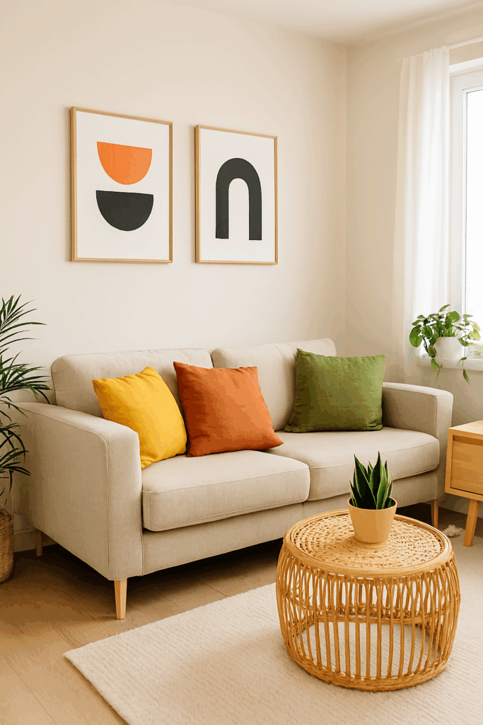 - Almofadas coloridas: troque as capas e mude o clima da sala instantaneamente.