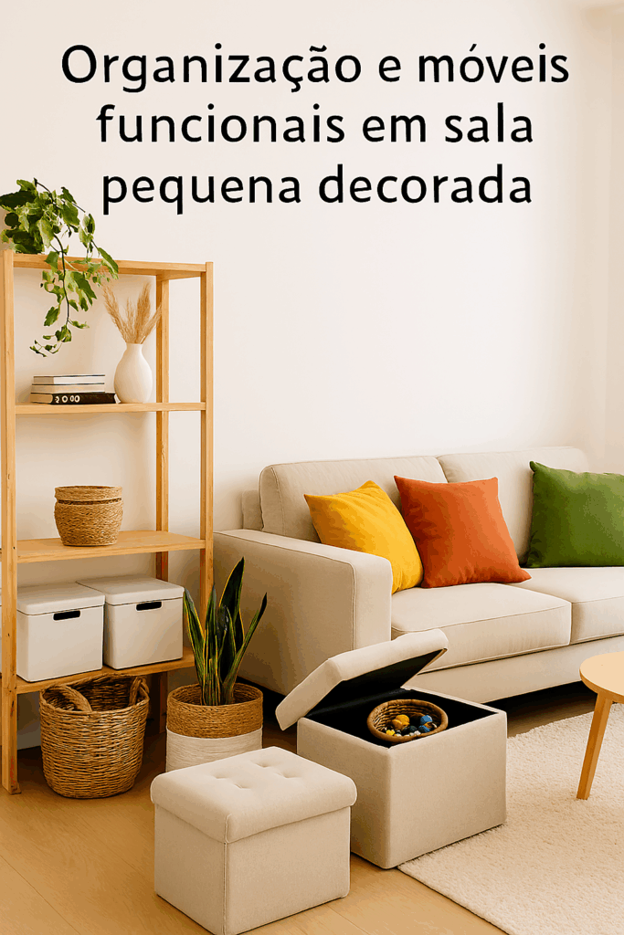 Em uma sala pequena, cada centímetro conta. Por isso, a organização é parte da decoração. Aposte em móveis multifuncionais, como pufes com baú, mesas dobráveis e prateleiras suspensas.