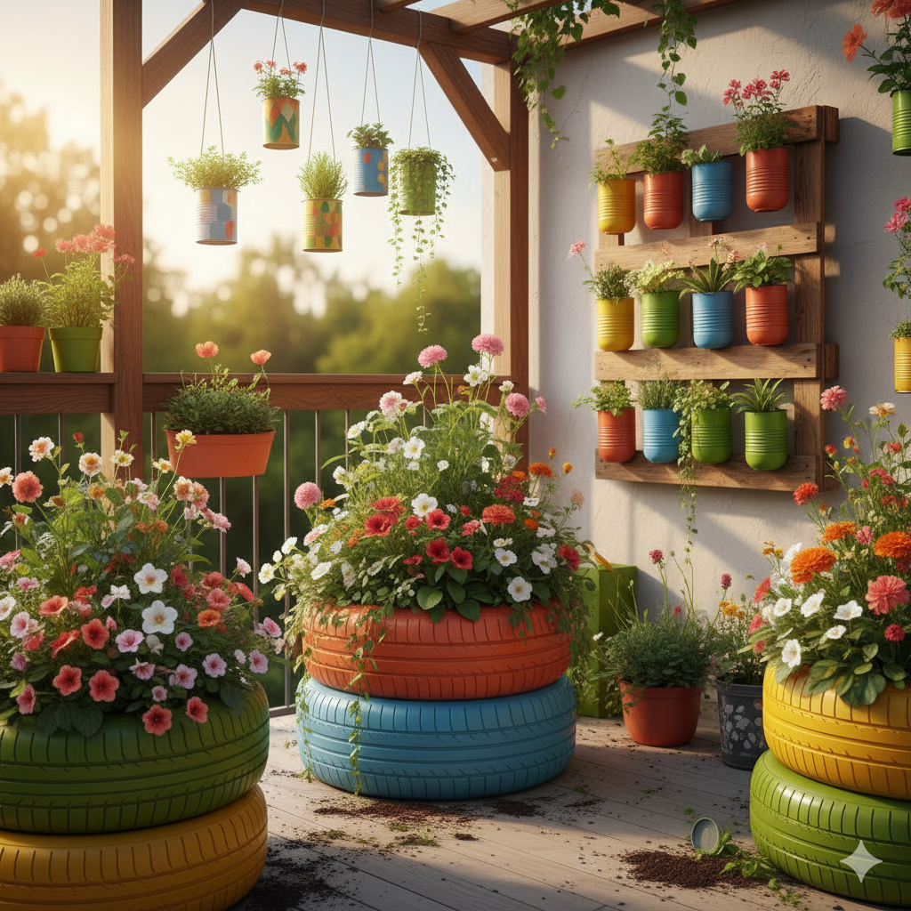 🌿 Jardim e varanda: natureza com reaproveitamento