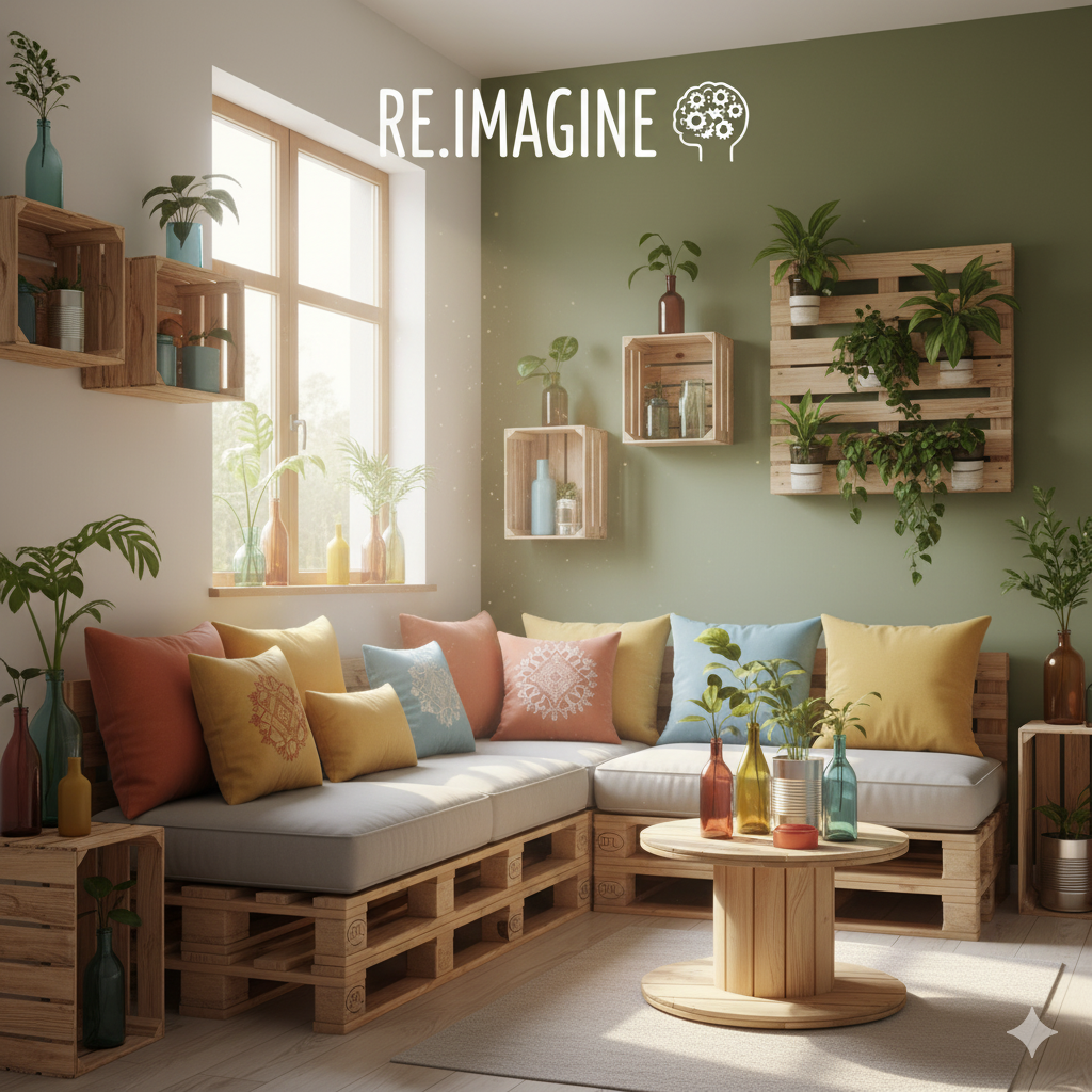 Vamos conversar sobre como você pode deixar sua casa linda, acolhedora e com um toque sustentável usando apenas criatividade, boas ideias e alguns materiais que provavelmente já estão por aí — esperando uma nova chance.