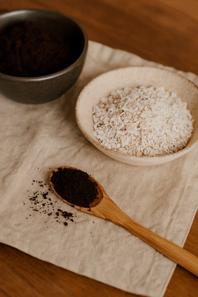 • Seque as cascas de ovo, triture e misture com a borra de café.